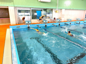 練習は泳ぐ距離も回数も普段より〇倍…