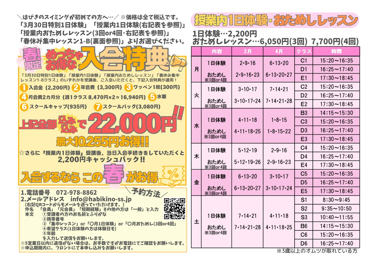 この春、はびきのスイミングでは