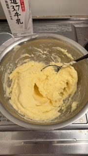 じゃがいもを茹でて、マッシュポテトを作るところからやりました!!