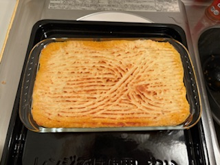 ミートソースの上にマッシュポテトをかぶせて、オーブンで焼けば完成!!