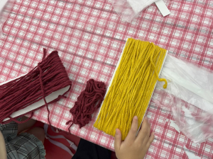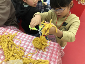 2部では帽子を毛糸で作りました