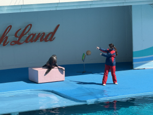 昼食の後は、おみやげを購入し、アシカイルカショーを観ました🐬