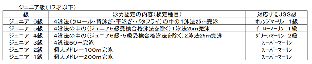 「日本スイミングクラブ協会 泳力認定」です。