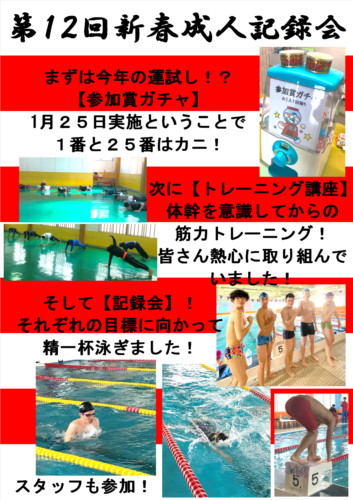1月25日(日)にジャンボで第12回新春成人記録会を行いました![]()