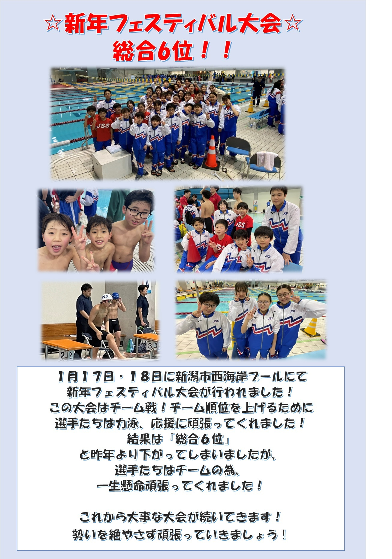 冬休みの練習の成果を発揮できた選手が多く、2026年良いスタートになったと感じました。