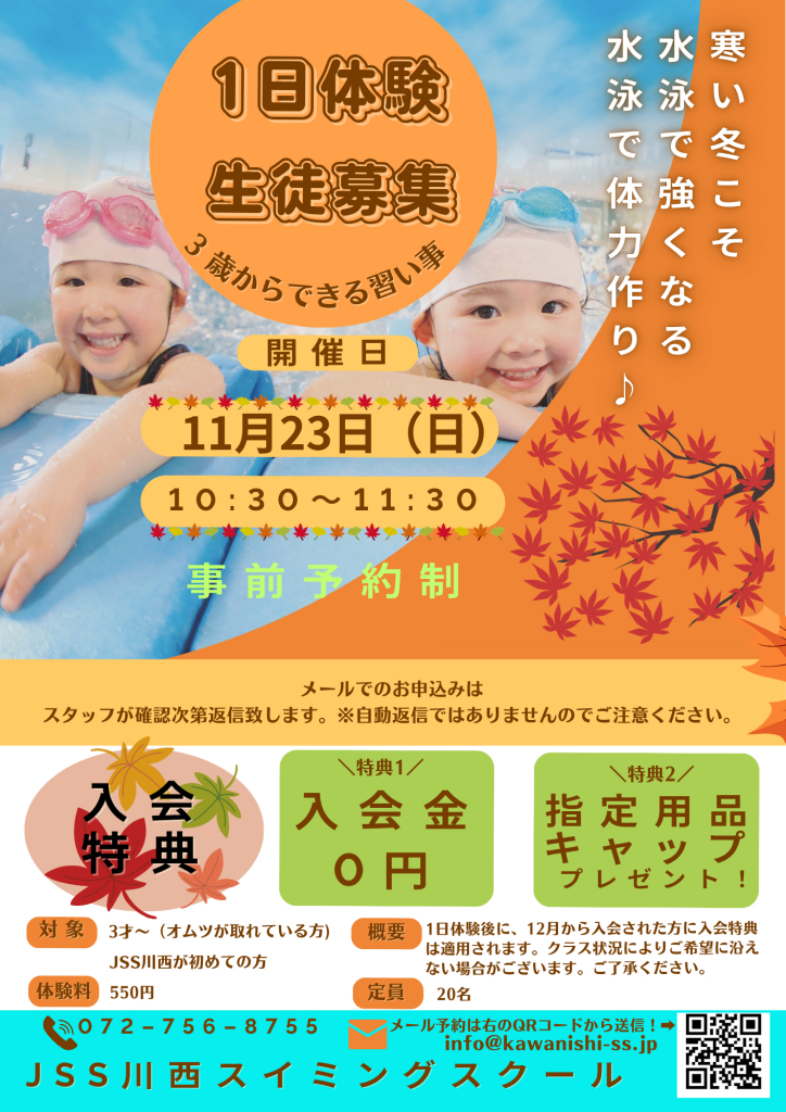 11月23日(日)に1日体験会を行います