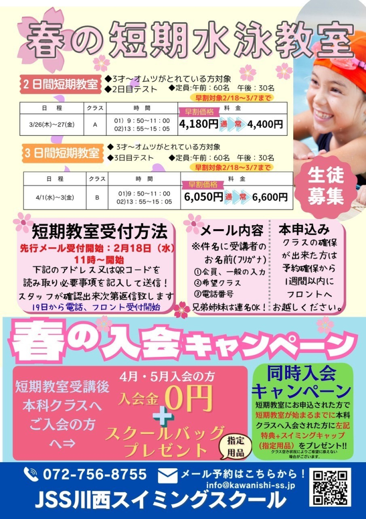 🌸春の短期教室のお知らせ🌸