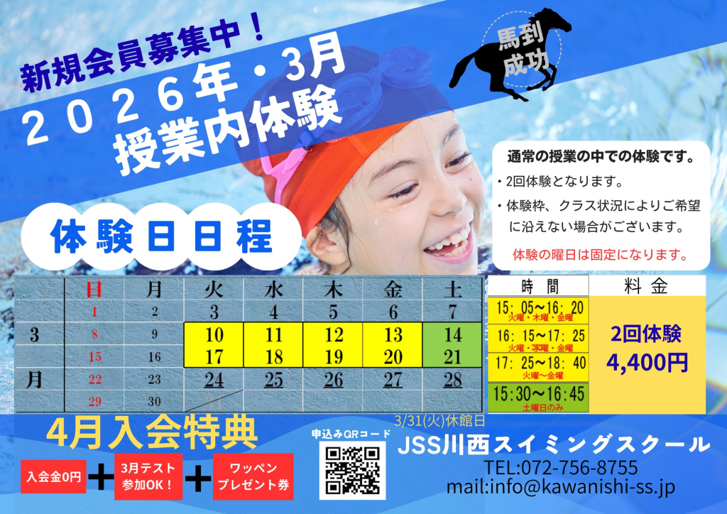 3月授業内体験の日程が決定しました♪今月は2回体験となります😍 是非お越しください😊