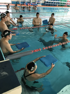 青木コーチは沢山のコーチ達に水泳指導を