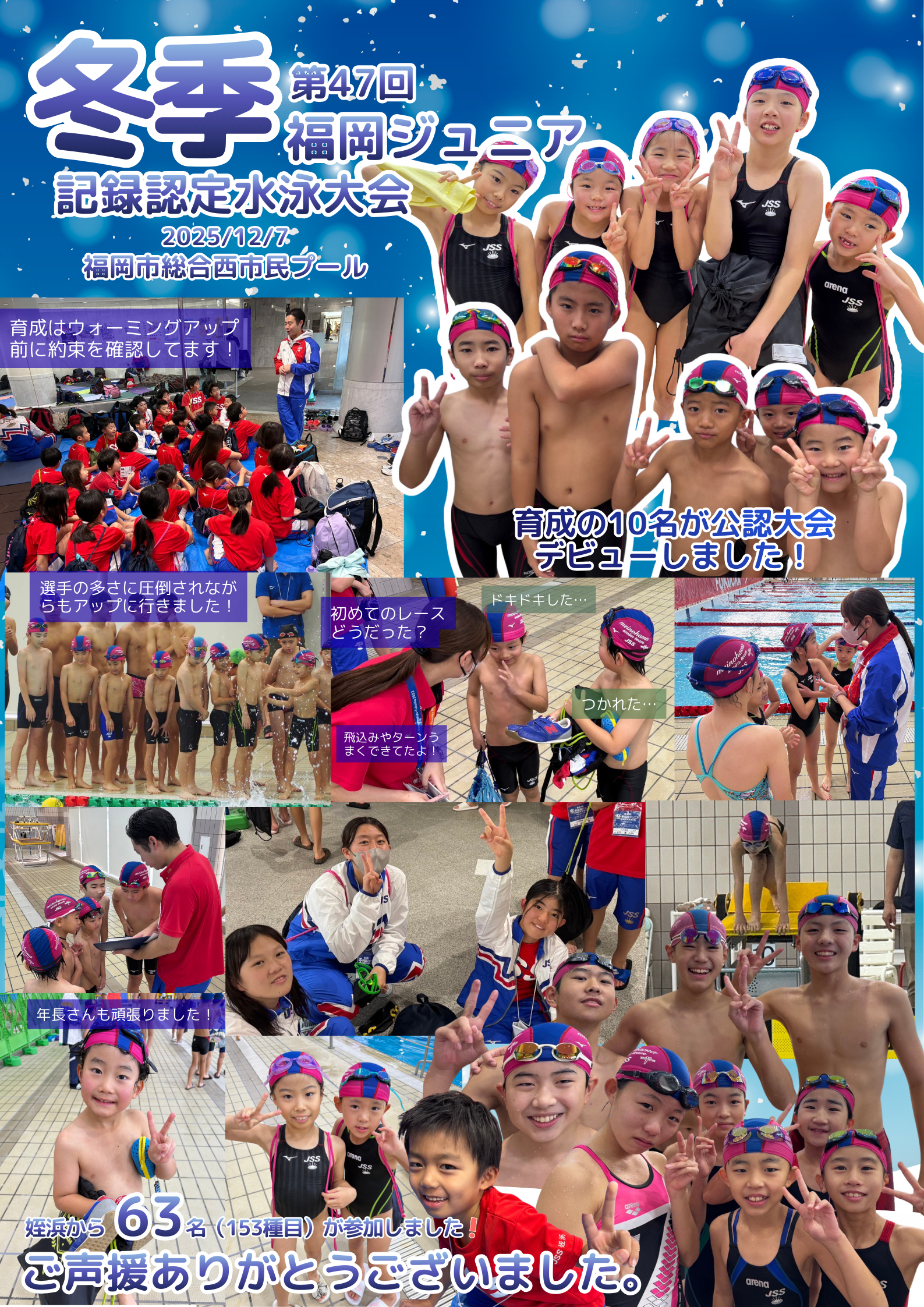 選手達が水泳を通して成長できることを目標に今後もサポートしていきますので、