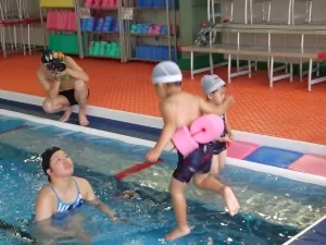 プールの中からの写真も撮ってもらいます![]()