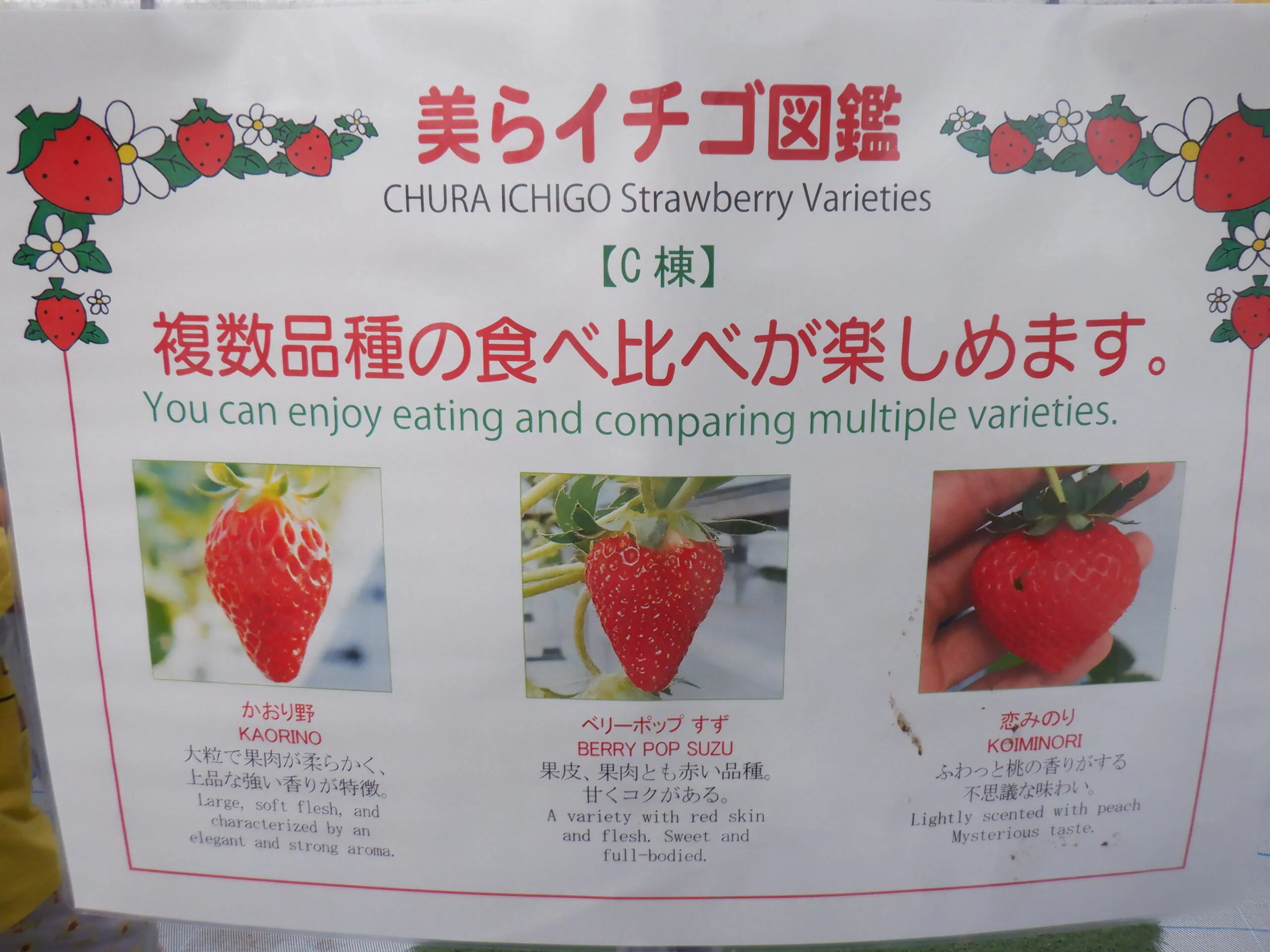 ここには3種類のいちごがありましたよ