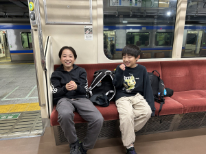 電車での移動ということもあり、みんなドキドキ&ワクワク…![]()