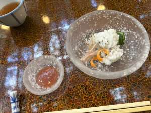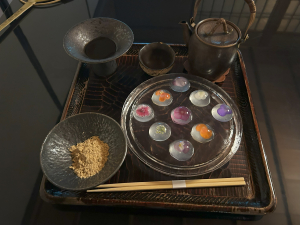 せせらぎの音に癒されながら川床料理を舌鼓しました。鮎の塩焼きは最高においしかったです。湯引き鱧(梅肉ソース付)も絶品でした。ランチの後は錦市場に移動してお土産購入&食べ歩きを楽しみました。とあるお店の「う巻き」食べたかったな~余りにも人が多くて購入断念。😪 1時間半ほど錦市場でお買い物を楽しみ最後に登録有形文化財のお店にスイーツを頂きに行きました。「華わらび」です。めちゃくちゃ綺麗で食べるのに躊躇しました😅でも食べましたけど。抹茶も大変よろしいお味で。😘 よく考えると1日中食べていた気がする・・・。