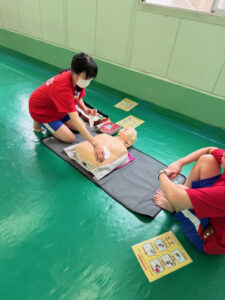全員で連携しながら2分間連続で胸骨圧迫を