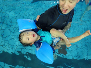 富雄スイミングでは、4ヶ月の赤ちゃんから一緒に入れます。