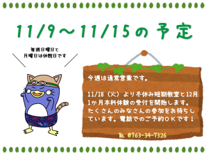 1109今週の予定