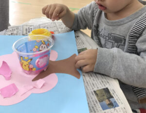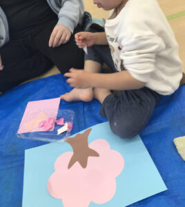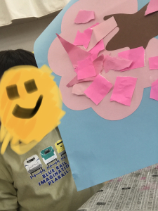 画用紙の桜では、様々な硬さの紙を手でちぎって作品を作り上げました😊