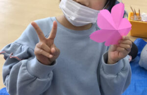 画用紙や折り紙を使った桜の制作を行いました!