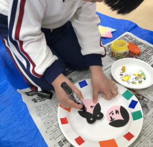 自分たちで顔も描いて、とても可愛らしい作品が出来上がりました🎎